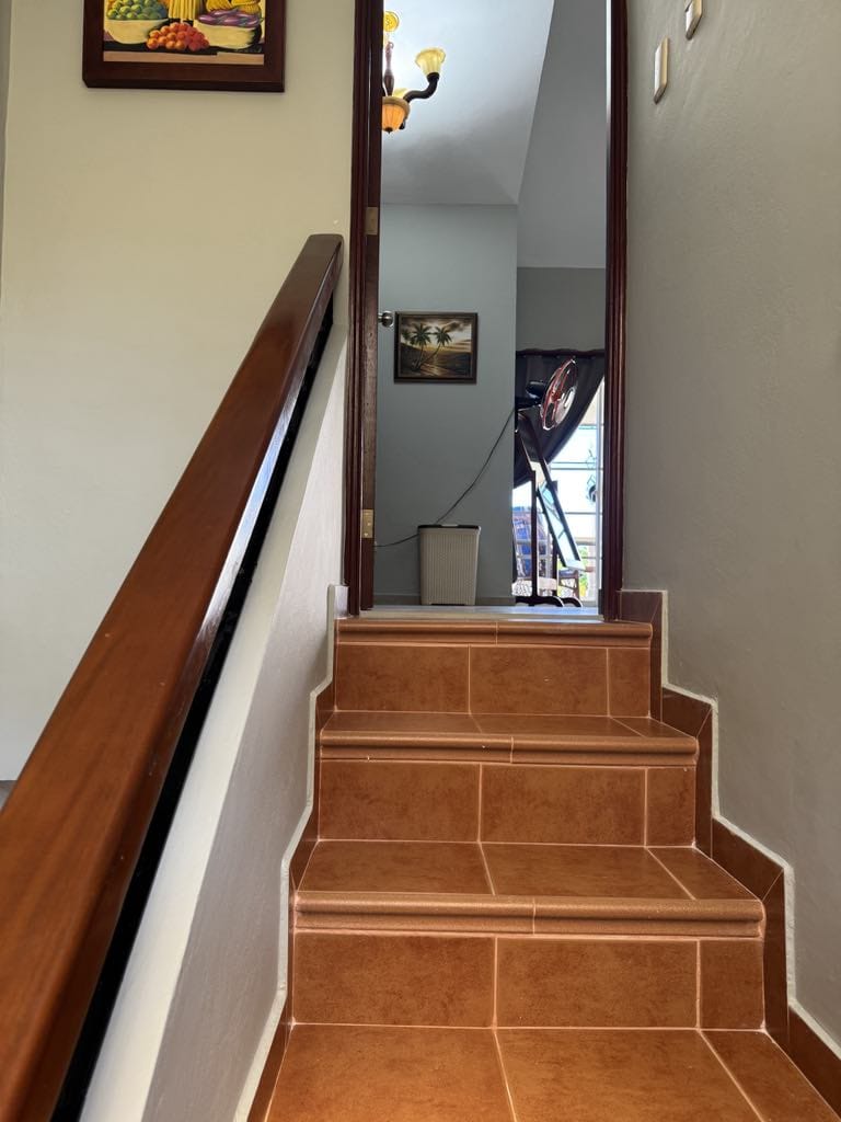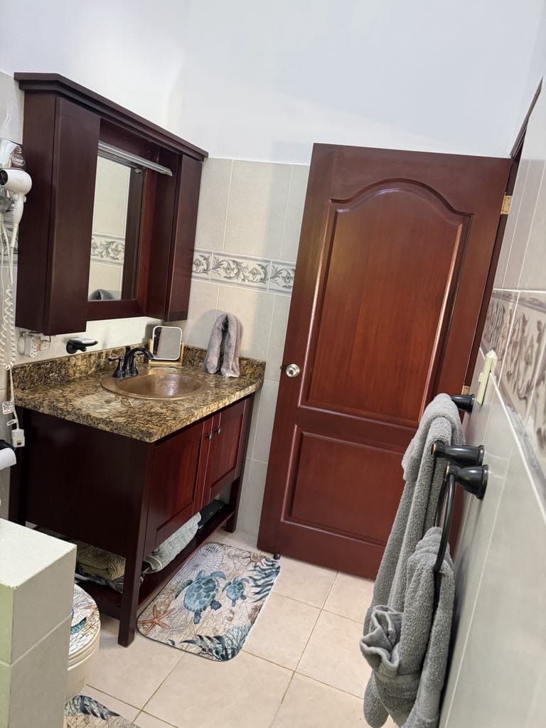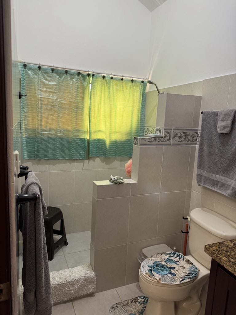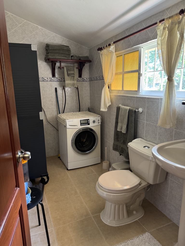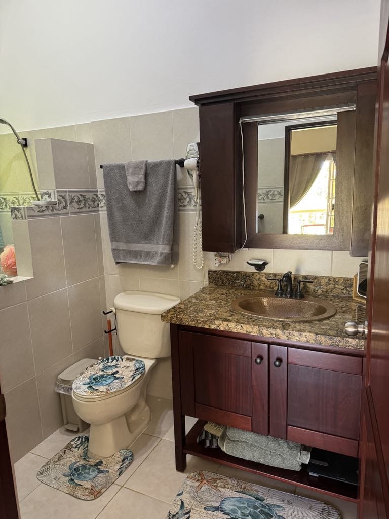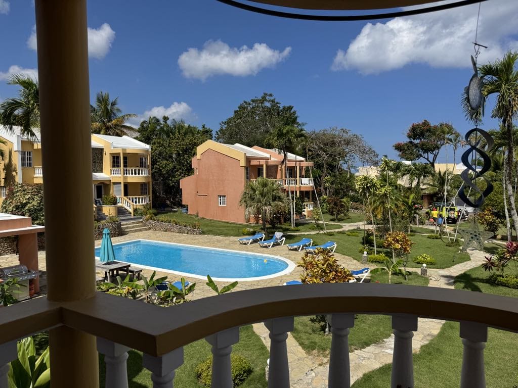 Step into style and serenity with this beautifully furnished 1-bedroom, 1.5-bath condo in a peaceful neighborhood just minutes from the heart of Sosúa. Spanning two levels and 116.59 m², this inviting home blends classic Spanish charm with thoughtful modern updates—like fresh paint, stylish tile flooring, and a solar-powered hot water system.